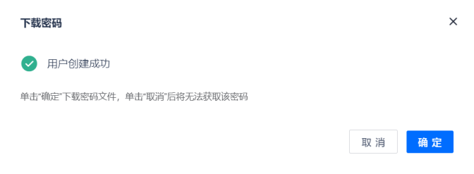 (5) 单击“确定”,下载用户密码至本地保存,且可查看新创建的用户列表。