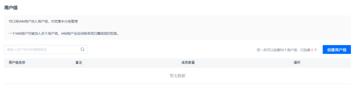 (2) 在左侧导航栏选择“用户组”,进入用户组页面。