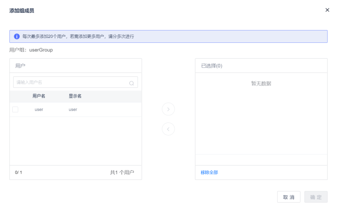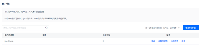 a. 单击页面右上角的“创建用户组”,弹出创建用户组窗口。