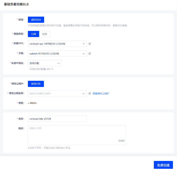 (5) 单击“免费创建”,即可完成创建基础负载均衡实例。
